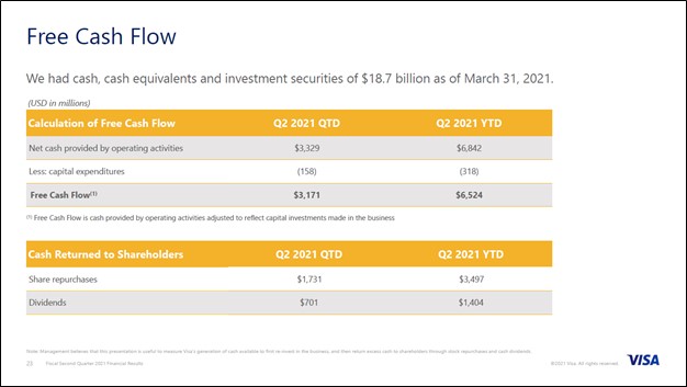 Image Shown: Visa Inc remains a tremendous free cash flow generator, aided by its asset-light business model. We continue to be big fans of Visa and include the company as a top-weighted idea in our Best Ideas Newsletter portfolio. Image Source: Visa Inc – Second Quarter of Fiscal 2021 IR Earnings Presentation