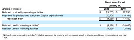 Image Source: Walmart’s Fourth-Quarter 2020 Earnings Press Release. Free cash flow trends weakened in fiscal 2020.