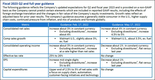 Image Shown: A look at Walmart’s guidance for fiscal 2023 as of May 2022. Image Source: Walmart – First Quarter of Fiscal 2023 Earnings Press Release
