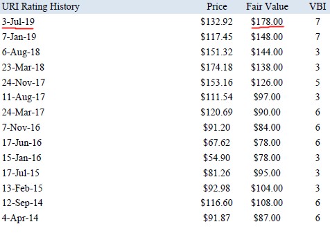 Image Shown: We increased our fair value estimate for United Rentals in early July 2019.