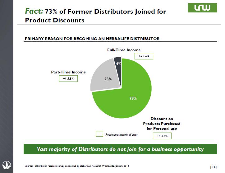 In fact, one of the major complaints Ackman has against Herbalife is that its revenue growth is driven by distributors purchasing the product—something Herbalife doesn’t dispute (shown above). Of course, if that is the case, and “distributors” are signing up for discounts, it speaks to the quality of the product, which the bears tend to think is not high.