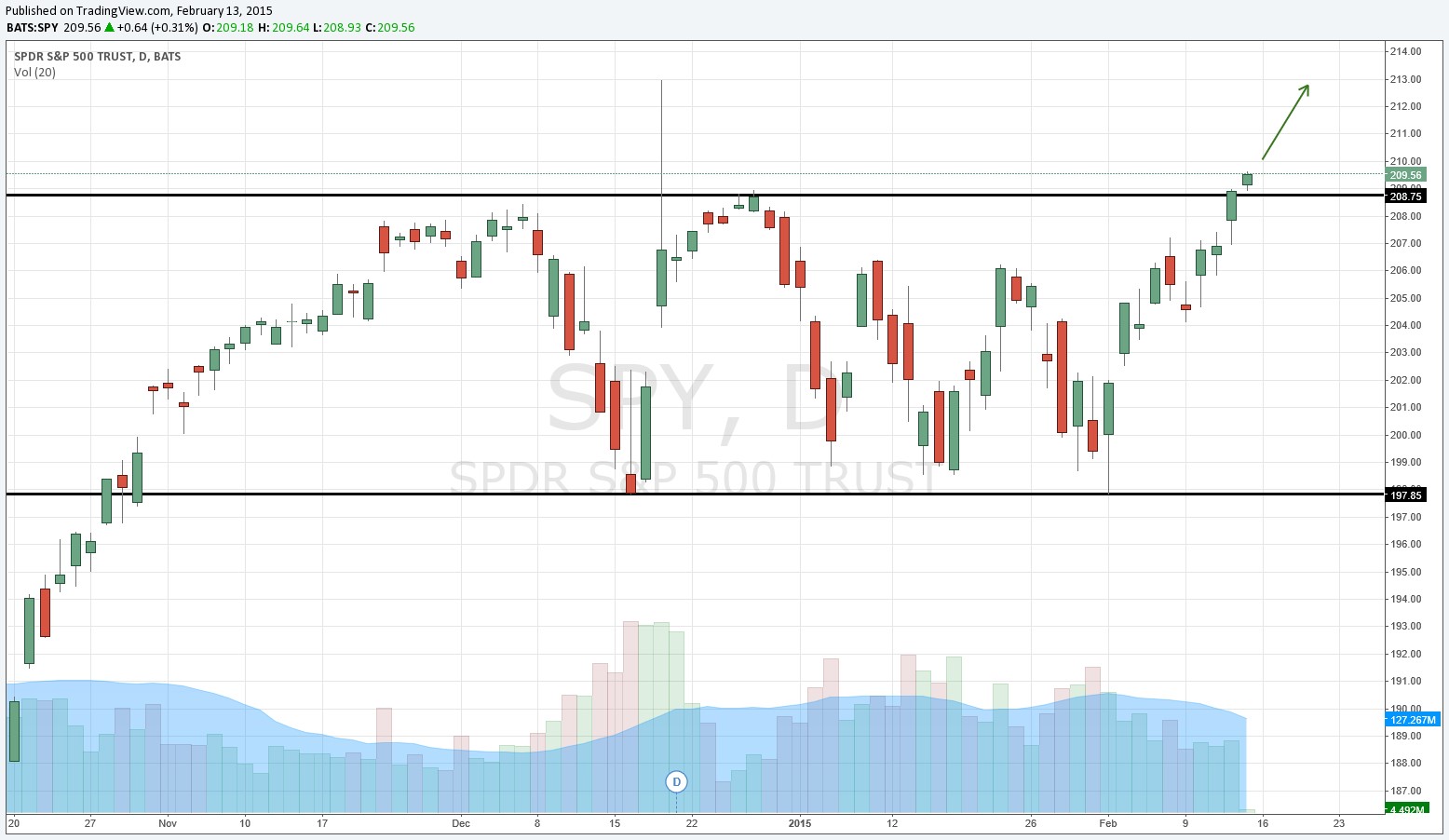 The S&P 500 (SPY) hit another new high February 13 after basing for much of the past few months. What once was resistance is now support. We find the resilience of the equity markets almost hard-to-believe. Geopolitical uncertainty, threats of an interest rate hike, foreign currency headwinds, slowing growth in the US and China, damage across the energy sector (XLE) and many other commodities, and the list goes on and on…