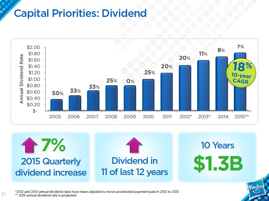Note: On July 1, we took some profits on Hasbro (HAS) north of $75 per share. Please read the introduction on page 1 of the July edition of the Dividend Growth Newsletter .