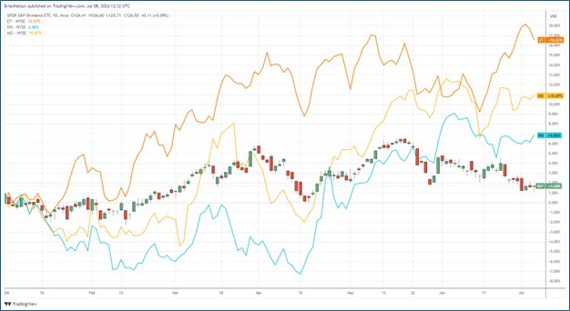 Image: Energy Transfer, Philip Morris, and Altria have outperformed the SPDR S&P 500 Dividend ETF (SDY) since the beginning of 2024.