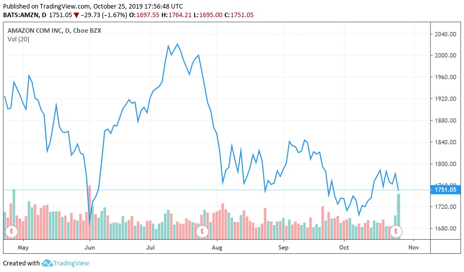 Image Shown: Shares of Amazon Inc have stumbled so far in 2019 as the headwinds from rising tariffs, largely a product of the US-China trade war, combined with a competitive cloud computing landscape put downward pressure on its profitability levels.