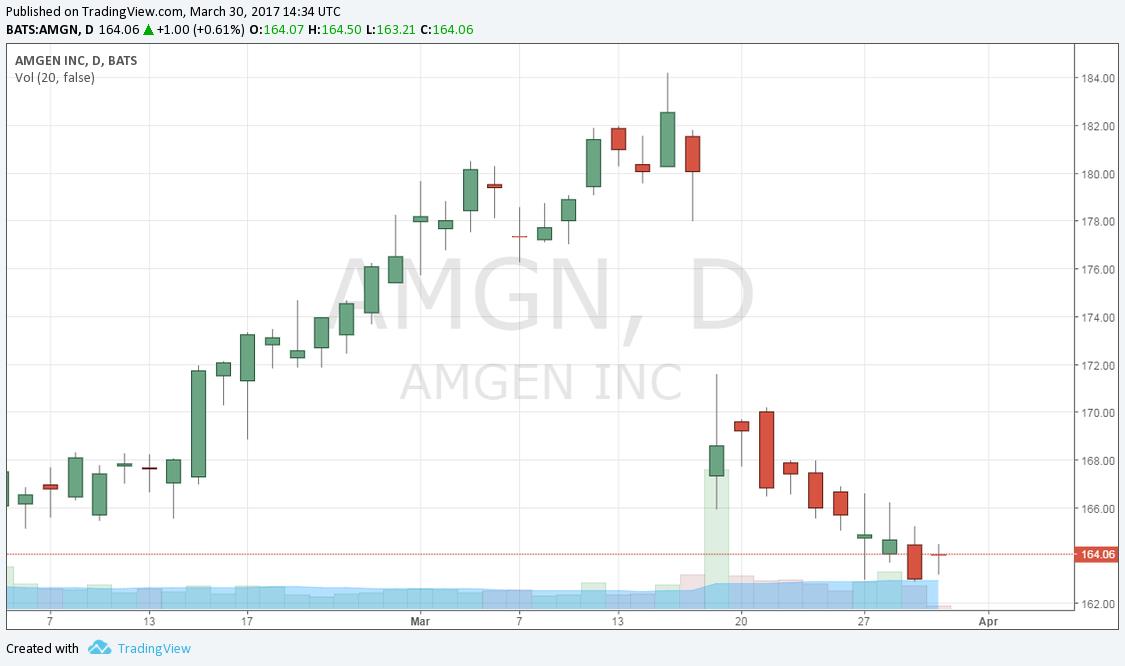 Amgen’s top seller remains, Enbrel, a treatment for various inflammatory diseases. The payers have begun to push back on the pricing strategy employed by pharma/biotech where significant annual price hikes are handed down. The drop in Amgen’s share price in October 2016 came on the heels of the revelation that it expects little contribution from price hikes this year on Enbrel.