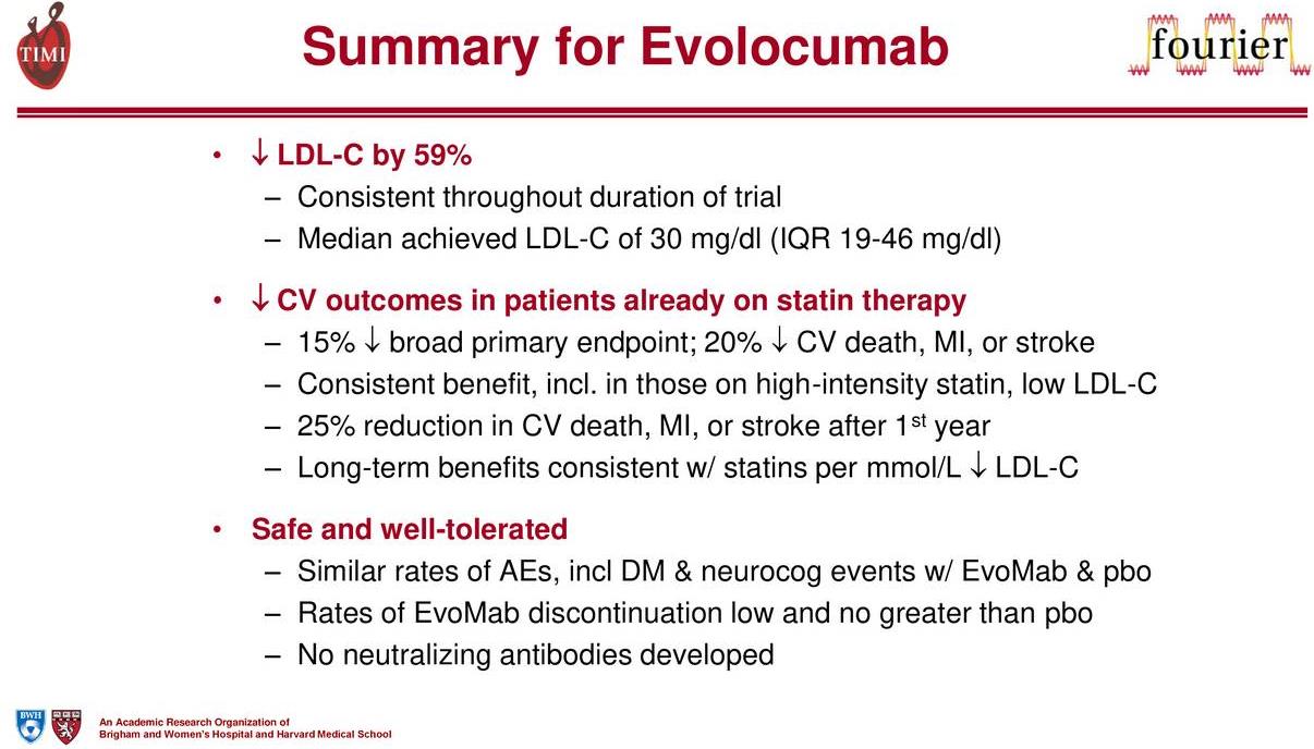 The lowering of LDL-C, as shown by the Fourier trial does have a positive impact, but the goal of reducing cardiac death remains elusive. The ability to drop LDL-C is a significant step in lowering the overall risk but remains just part of the process. Additional work will need to be conducted with other mechanisms to produce the desired outcome.