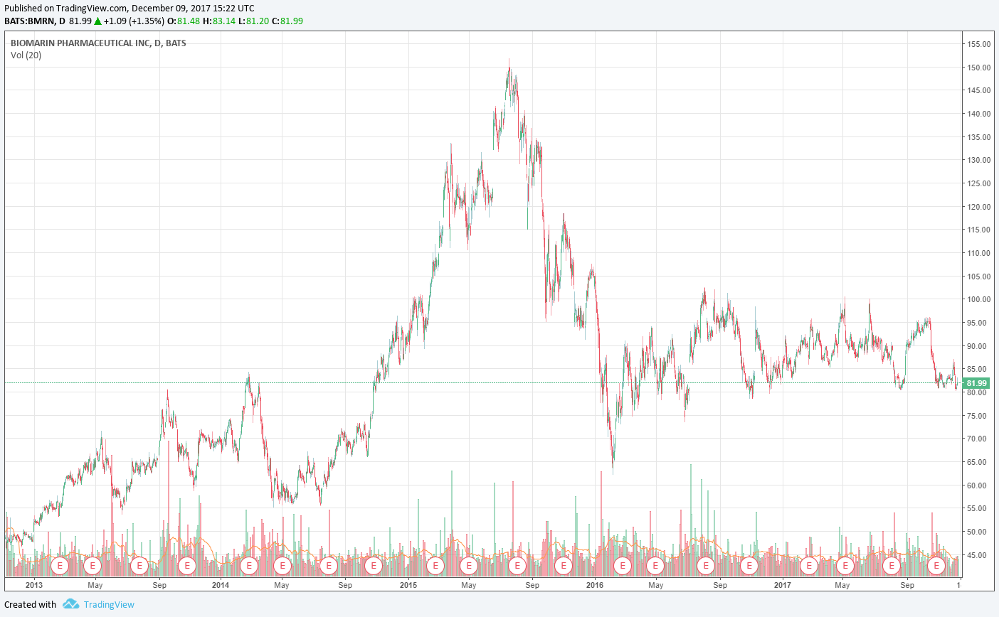 Image shown: BioMarin’s stock price has had a choppy ride these past couple years.