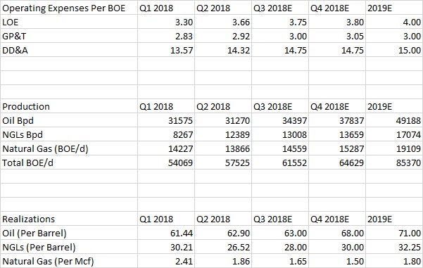 During the 12 months ending in the second quarter of 2018, Centennial Resource’s oil mix shifted lower to 54.4% from 58.8%. The reason for this decrease was due to Centennial being able to market its ethane production as a liquids product, instead of being forced to put that ethane back into the natural gas production stream. Management expects that Centennial’s production mix will shift back towards 58-60% crude by the end of 2018.