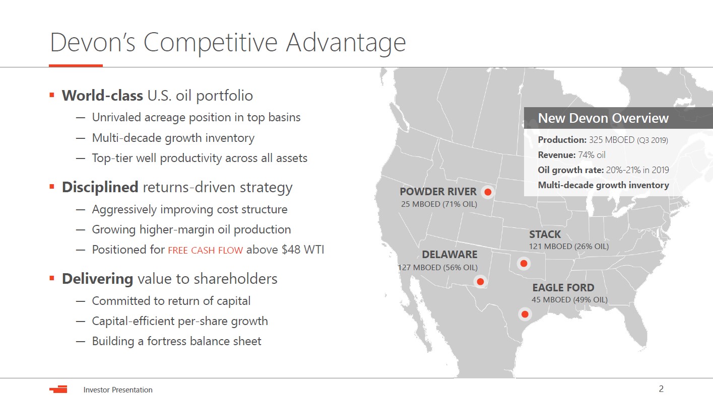 Image Shown: An overview of Devon Energy Corporation’s remaining asset base, which consists of upstream oil and gas operations spread across four major unconventional plays in the US. Image Source: Devon Energy Corporation – December 2019 IR Presentation