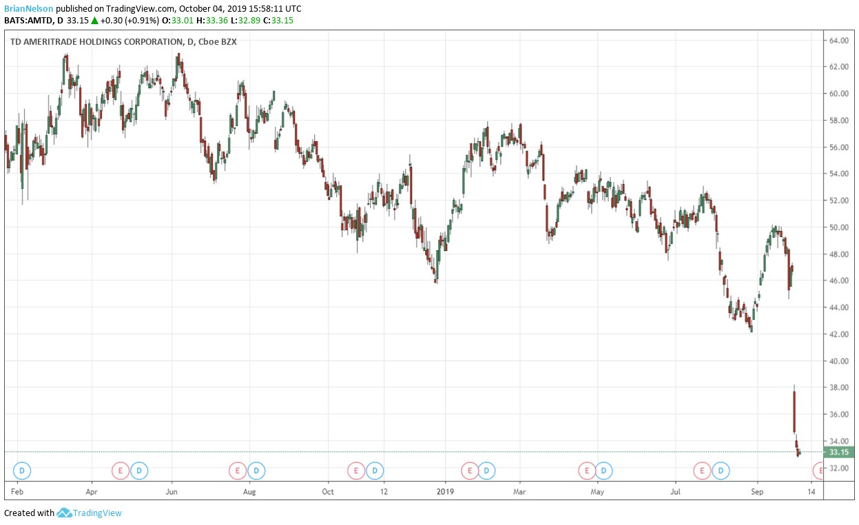 Image: Shares of TD Ameritrade Holdings have been punished as online trading commissions go to zero.