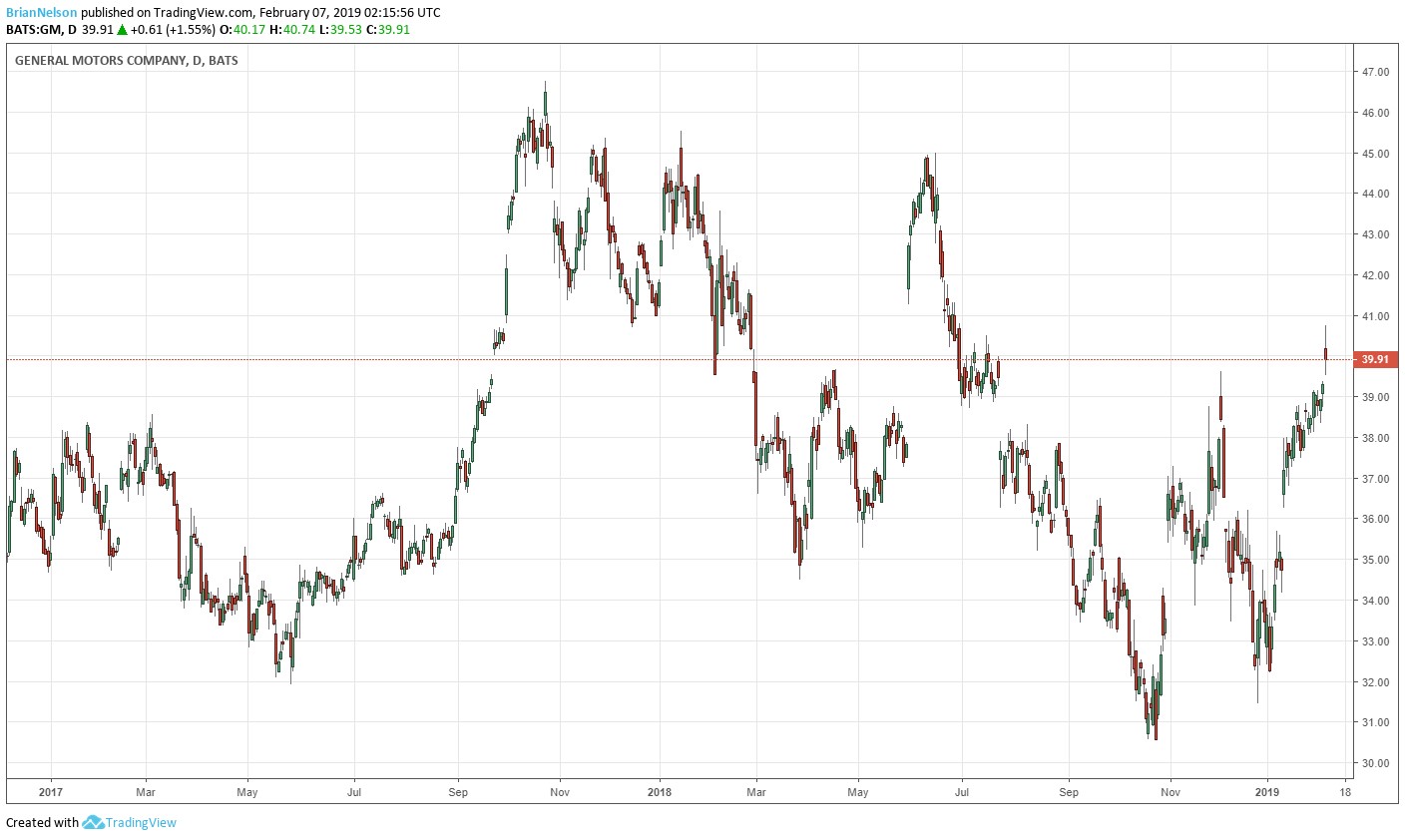 On February 6, General Motors (GM) reported fourth-quarter 2018 earnings, and they were quite good. We continue to believe shares of GM are ultra-cheap, as we wrote in: “We Think General Motors Is Poised for New Highs.” The automaker is included as an idea in both the Best Ideas Newsletter portfolio and Dividend Growth Newsletter portfolio. We value shares at $54 each, suggesting the potential for 35% upside based on its closing price February 6. We continue to believe GM’s electric-vehicle line-up will be a hit, and with Cadillac leading the charge in that area, we think the risk is actually to the upside. Here’s a quick synopsis of how GM ended the year: