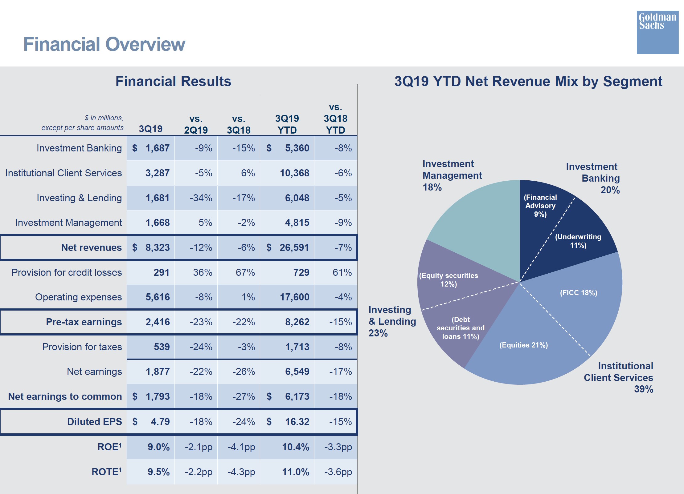 Image Source: Goldman Sachs 3Q2019 Earnings Presentation
