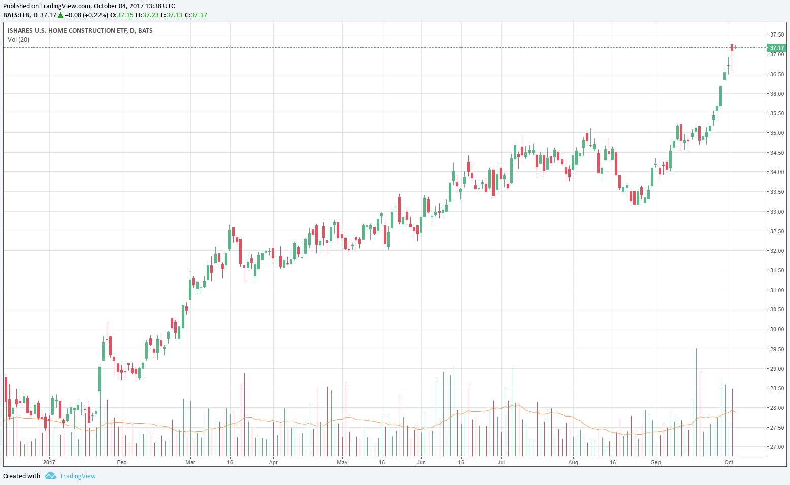 Image Shown: The iShares US Home Construction ETF (ITB) has advanced ~ 24% year-to-date, according to data from YahooFinance.