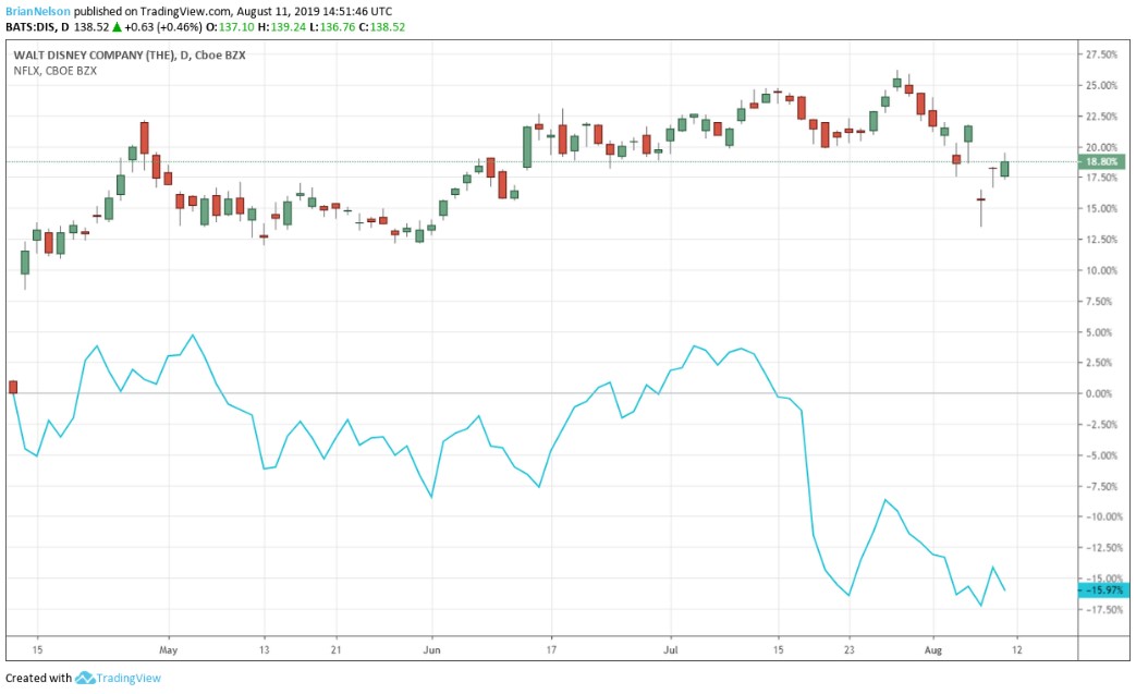 Image Shown: Disney’s shares have outpaced Netflix’s since the company announced the launch of Disney Plus in April this year.