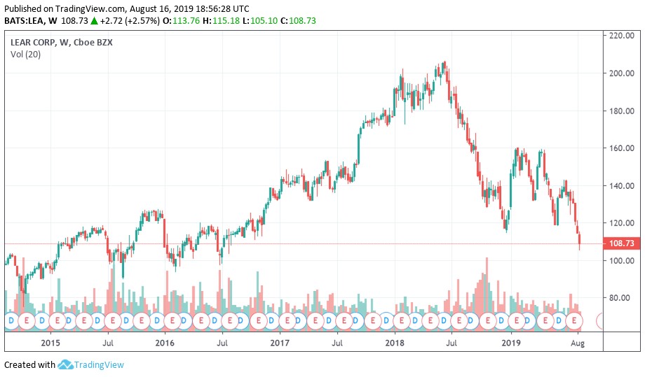 After a short-lived rebound at the beginning of 2019, LEA continued to drift lower likely due to investor concerns regarding declining global vehicle production, the US-China trade war, the negative impact tariffs have on input prices, and how that is feeding into the global slowdown in industrial activity.