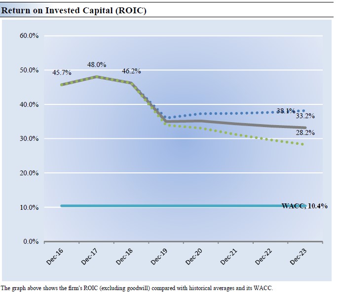 Image Shown: Lear has seen its return on invested capital, excluding goodwill, consistently exceed its estimated weighted-average cost of capital over the past few years and we expect that to continue going forward.