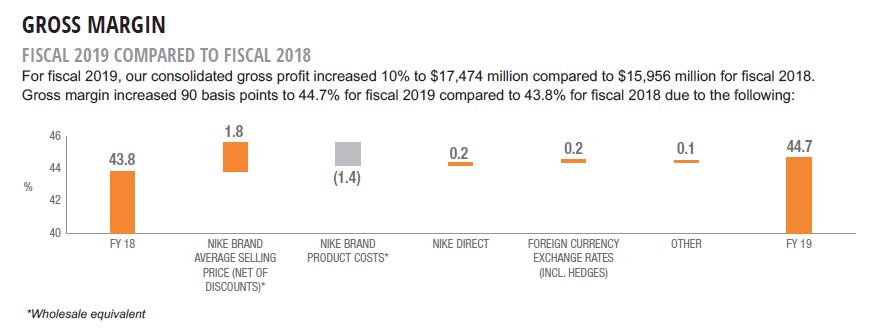 Image Shown: Nike’s gross margins expanded in fiscal 2019 versus fiscal 2018 levels, a trend that continued into the first quarter of fiscal 2020. Image Source: Nike – Fiscal 2019 Annual Report