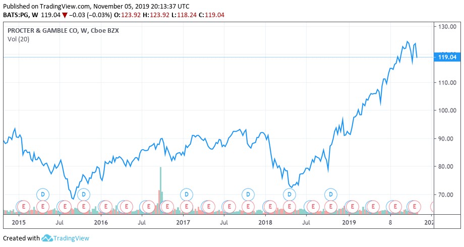 Image Shown: Shares of Procter & Gamble have been on an epic run since mid-2018, and we think shares have gotten ahead of themselves here.