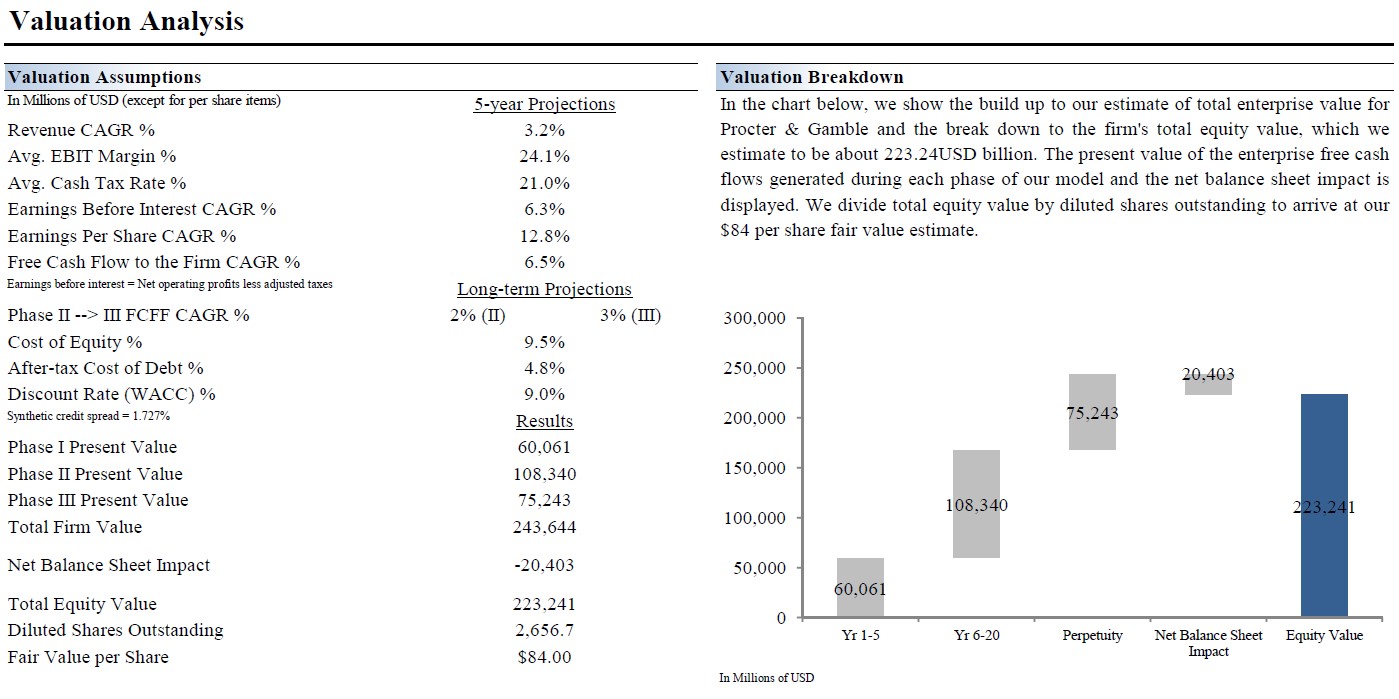 In the graphic below, from our 16-page Stock Report covering P&G (can be accessed here), we highlight our forecast assumptions for the company’s future financial performance under our base case scenario. To achieve an intrinsic value well north of $100 per share, an investor would have to believe P&G will grow its top-line consistently at rates well above what we view as reasonable over the medium- and long-term.