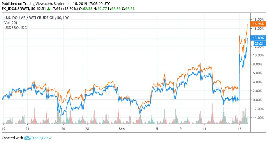 Disaster struck this weekend when several drones took out the Abqaiq oil processing facility and the massive onshore Khurais oil field in Saudi Arabia (KSA) on Saturday, with WTI and Brent both surging on the news once trading resumed at the start of the week. The Khurais oil field produces around 1.5 million barrels of crude per day and the Abqaiq oil processing facility is the largest in the world. Saudi Arabia’s oil production capacity was reduced by 5.7 million barrels of crude per day due to these attacks and the country is reportedly considering delaying the IPO of ARAMCO, an IPO that we covered in detail in this piece here.