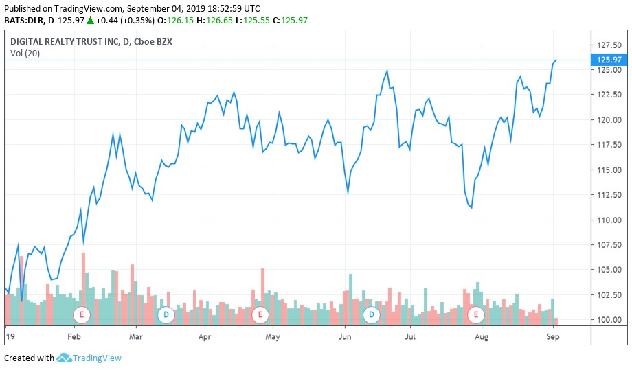 Image Shown: Shares of Dividend Growth Newsletter holding Digital Realty are on a nice upward trend since reporting second quarter 2019 earnings at the end of July with room to move higher.