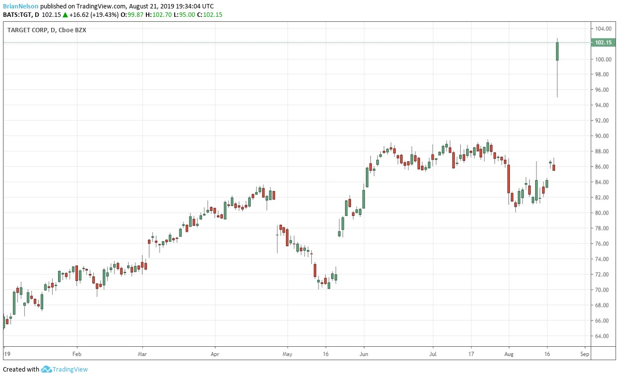 Image Shown: Shares of Target Corporation (TGT) leapt higher on August 21 on the back of its strong performance during the second quarter of FY2019. In particular, the retailer’s comparable same store sales growth was quite impressive given the hard comparison period, with e-commerce and same-day fulfillment leading the way.