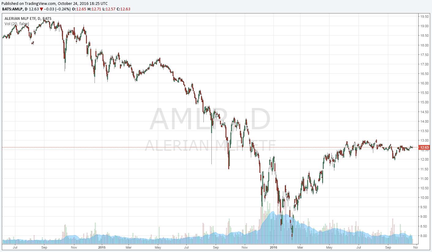 Units of master limited partnerships have bounced from what I would describe to be a “panic-selling bottom” in early 2016 and are now down only about one third from their all-time peak set in the summer of 2014. Energy Transfer Equity (ETE), for example, fell to ~$4 from ~$35 in June 2015, but the entity has rallied back to the mid-teens, now a 50% decline from its peak (about the time we sent out our warning email). It’s been a wild ride…but still a flat-out ridiculous one for income vehicles, would you say?