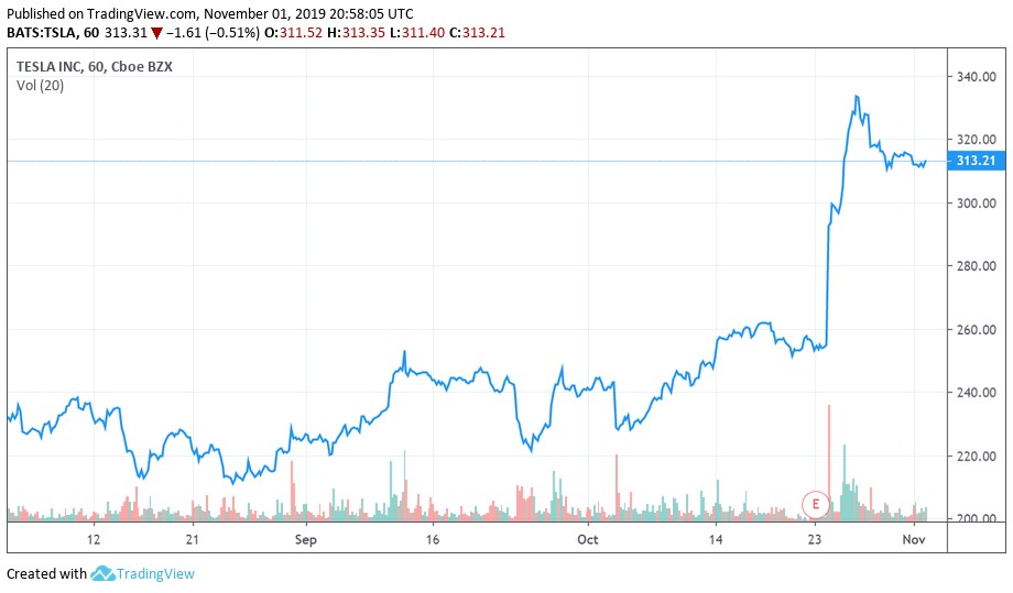 Image Shown: Tesla Inc saw its share price jump up after reporting solid third quarter earnings in late-October.