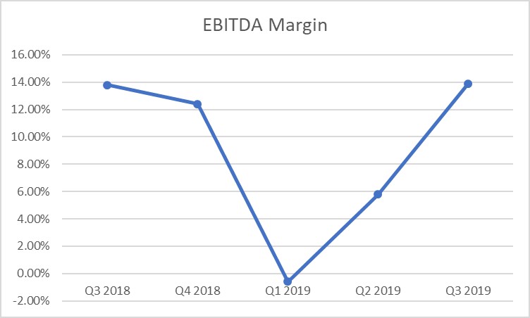 Image Shown: Tesla’s EBITDA margin rebounds, indicating the automaker’s march towards consistently positive free cash flows resumed in earnest during the second and third quarters of 2019. Image Source: Tesla – Third Quarter 2019 Earnings Presentation – Graph made by the author
