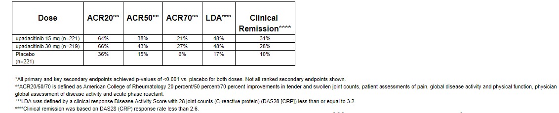 AbbVie, to its credit, is not sitting idly by, as a direct threat to its therapeutic superiority is about to enter the market. Abbvie has released some impressive phase 3 data which demonstrated a 66% reduction in ACR 20, in-line with the data posted by Baracitinib. Thus far, Abbvie reports that Upadacitinib does not demonstrate any new safety signals with the increased risk of blood clots cited by the FDA as the main reason why they initially rejected Baracitinib.