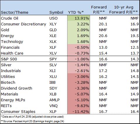 The stock market during the first few months of 2018 has been marked by a meaningful return to volatility. Commodity prices from crude oil (USO) to aluminum have had their moments in the sun as material supply/demand imbalances of years past continue to sort themselves out, with the help of a few key players, of course (OPEC member nations in the case of crude oil, and Chinese pollution regulations and US trade policy changes in the aluminum example). Geopolitical uncertainty is keeping both world leaders and investors on their toes as the world continues to navigate multiple denuclearization deals and potential looming trade wars, pushing some towards safe havens such as gold. Meanwhile, rising interest rates in the US continue to raise concerns over equity valuation and risk-reward trade-offs.