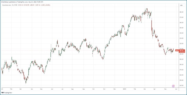 Back on March 21, Accenture (ACN) reported mixed second quarter fiscal 2024 results, with revenue missing top-line expectations and non-GAAP earnings per share beating the consensus forecast. “Accenture is a leading global professional services company that helps the world’s leading businesses, governments and other organizations build their digital core, optimize their operations, accelerate revenue growth and enhance citizen services—creating tangible value at speed and scale (Form 10-K).”