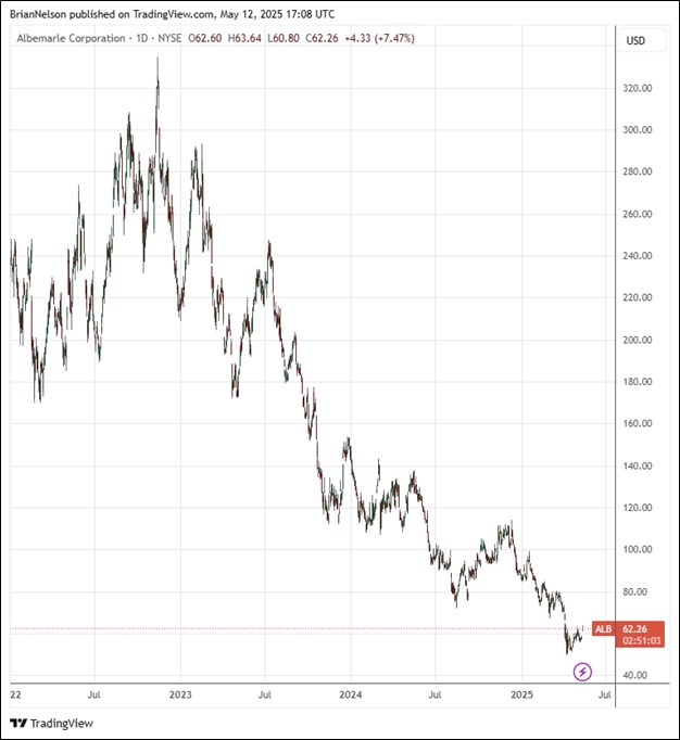 Albemarle’s cash flow from operations in the quarter came in at $545 million, which included a $350 million customer prepayment. The firm reiterated its view that it has line of sight to breakeven free cash flow assuming current lithium pricing. Albemarle also maintained its full-year 2025 outlook considerations. At year-end 2024 average lithium market price of $9/kg LCE, net sales are targeted in the range of $4.9-$5.2 billion, with adjusted EBITDA in the range of $0.8-$1.0 billion. Though Albemarle continues to struggle with a low lithium price environment, we were encouraged by commentary regarding free cash flow, and the stock remains an idea in the ESG Newsletter portfolio.