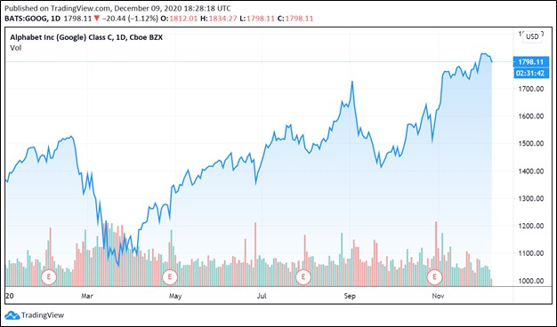 Image Shown: Alphabet Inc Class C shares have surged higher year-to-date as of this writing. We see room for additional capital appreciation upside.