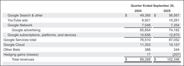 Our full stack approach to AI is delivering strong momentum and we’re shipping at speed, including the global rollout of AI Overviews and AI Mode in Search in record time. In addition to topping leaderboards, our first party models, like Gemini, now process 7 billion tokens per minute, via direct API use by our customers. The Gemini App now has over 650 million monthly active users. We continue to drive strong growth in new businesses. Google Cloud accelerated, ending the quarter with $155 billion in backlog. And we have over 300 million paid subscriptions led by Google One and YouTube Premium.