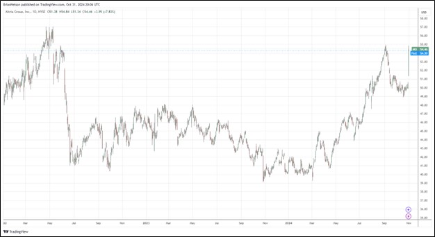 Image: Altria’s shares have recovered nicely during 2024.
