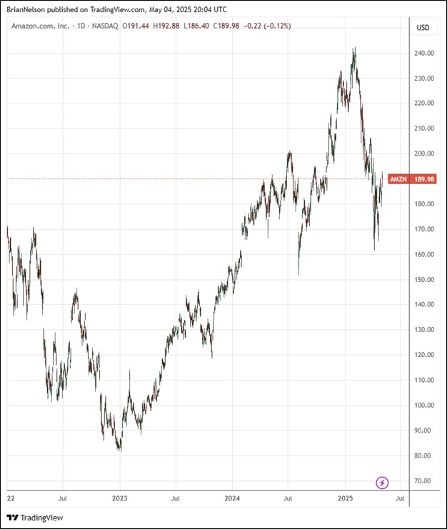 Looking to the second quarter, Amazon expects sales to be between $159-$164 billion, or to grow 7%-11% compared with the second quarter of last year. The midpoint was above the consensus forecast of $161.1 billion. Operating income is targeted to be between $13-$17.5 billion in the second quarter, compared with $14.7 billion in the second quarter of 2024, with the midpoint of the range coming in below the consensus forecast. Though the operating income guide for the second quarter wasn’t great, we like the momentum behind AWS and Amazon’s strong balance sheet, which houses $41.2 billion in net cash.