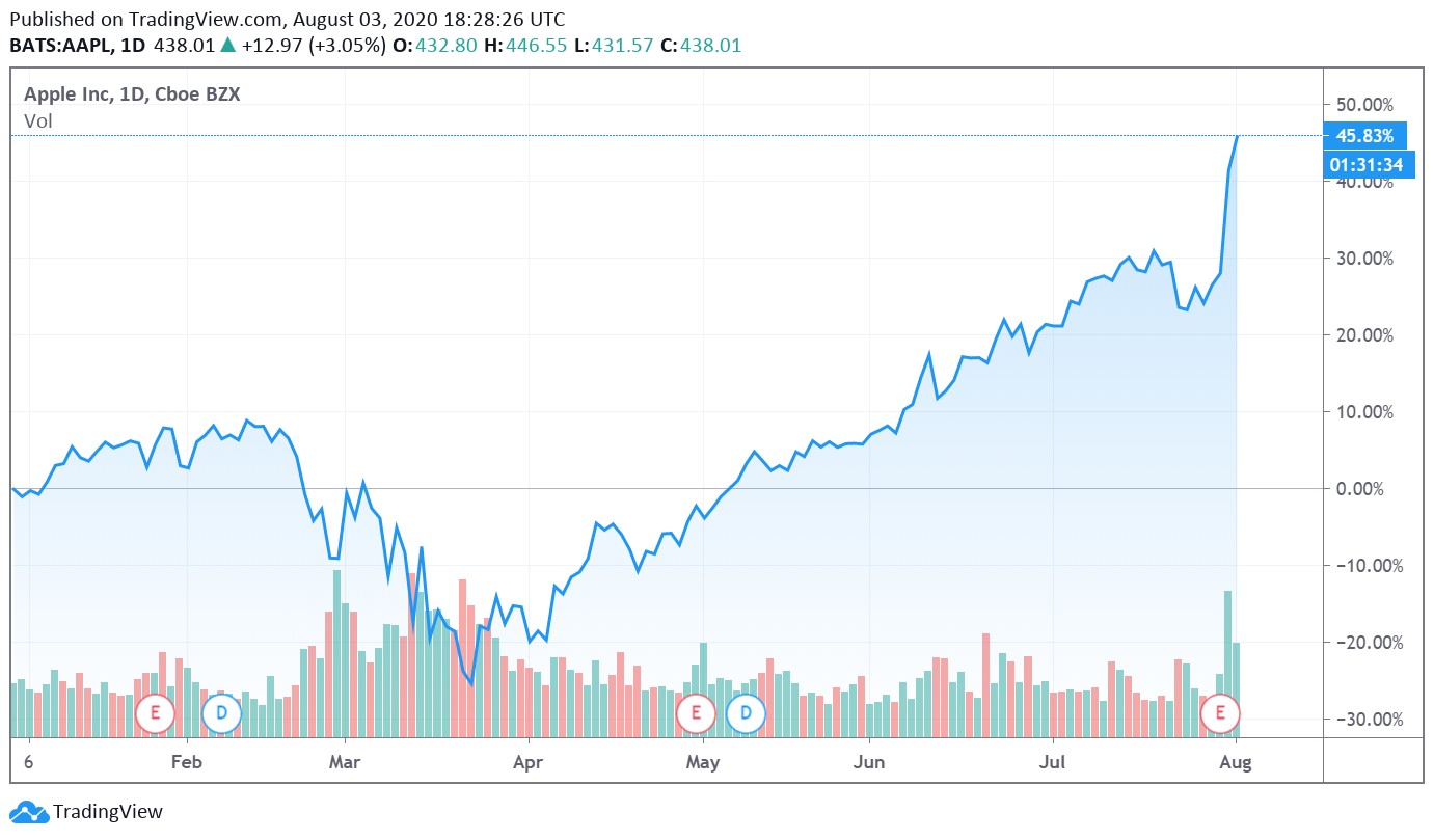 Image Shown: Shares of Apple Inc have staged an impressive rally since bouncing off their March 2020 lows, with AAPL up ~46% year-to-date as of this writing on August 3. We added shares of Apple back to the Best Ideas Newsletter and Dividend Growth Newsletter portfolios on June 12, 2020. Later on this August, Apple intends on completing a four-for-one stock split.