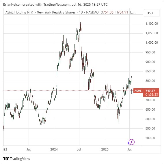 ASML Holding (ASML) reported solid second quarter results July 16 with revenue and earnings per share coming in ahead of the consensus forecast. Second quarter net sales were €7.7 billion on a gross margin of 53.7%. Net income was €2.3 billion. Quarterly net bookings in the second quarter were €5.5 billion, of which €2.3 billion was EUV. The company ended the quarter with €7.25 billion in cash and short-term investments. Here is what management had to say about the results: