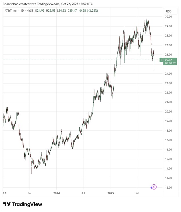 AT&T reiterated its full year 2025 financial guidance. Consolidated service revenue is targeted to grow in the low-single-digit range, while adjusted EBITDA is expected to grow 3% or better. Free cash flow is expected in the low-to-mid $16 billion range, while adjusted earnings per share is targeted in the higher end of the $1.97-$2.07 range. The company also reiterated its 2026-2027 financial outlook. Consolidated service revenue growth is expected in the low-single-digit range annually from 2026-2027, with adjusted EBITDA growth of 3% or better annually from 2026-2027. Adjusted earnings per share is expected to accelerate to double-digit percentage growth in 2027. Free cash flow is targeted at $18+ billion and $19+ billion for 2026 and 2027, respectively. We like the free cash flow growth expectations at AT&T, but its huge net debt position keeps us on the sidelines. Shares yield 4.3% at the time of this writing.