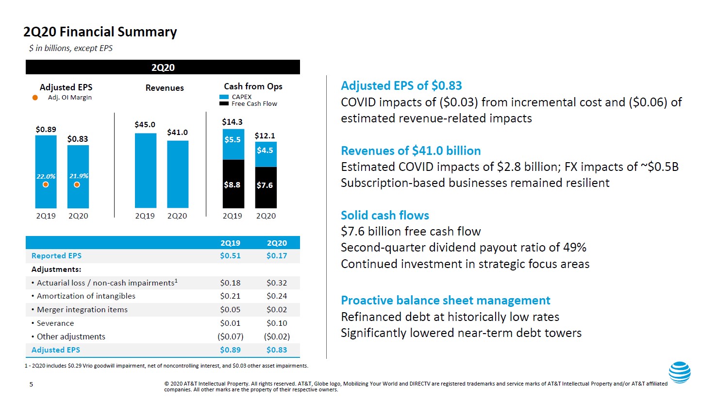 AT&T’s GAAP revenues moved lower by 9% year-over-year in the second quarter of 2020 as the firm dealt with headwinds created by COVID-19. The company also took a $2.3 billion asset abandonment and impairment charge last quarter, which along with headwinds facing its revenues resulted in the firm’s GAAP operating income turning significantly lower on a year-over-year basis.