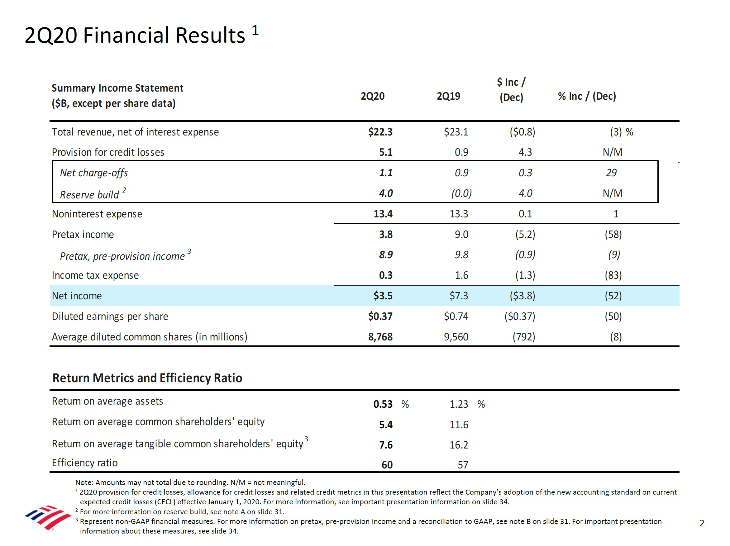 Image Shown: Summary of Bank of America’s 2Q2020 results. Image Source: Bank of America 2Q2020 Earnings Presentation.