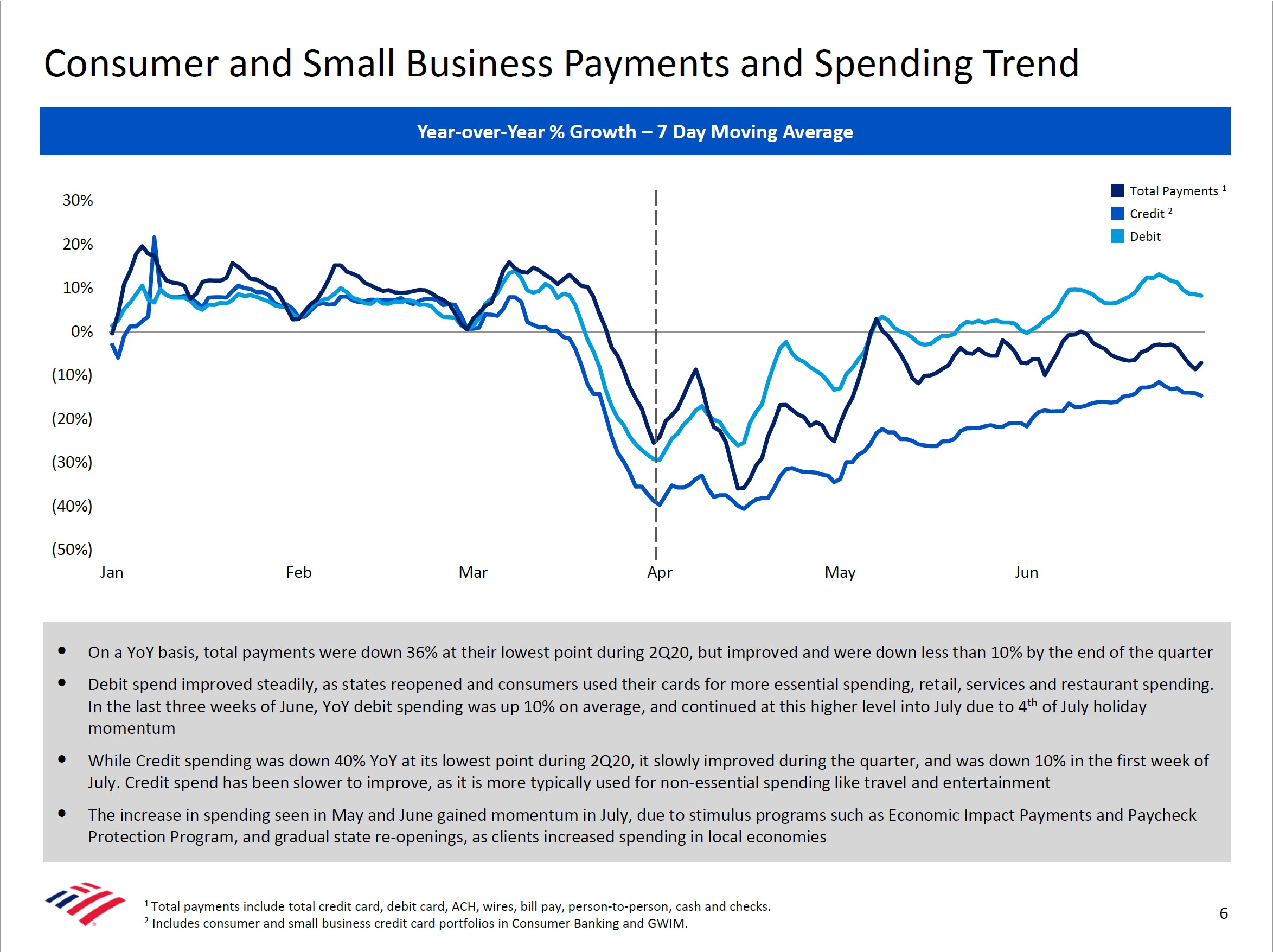 Image Shown: Bank of Consumer and Small Business Payments and Spending Trends show a nice bounce off of the April lows. Image Source: Bank of America 2Q2020 Earnings Presentation.