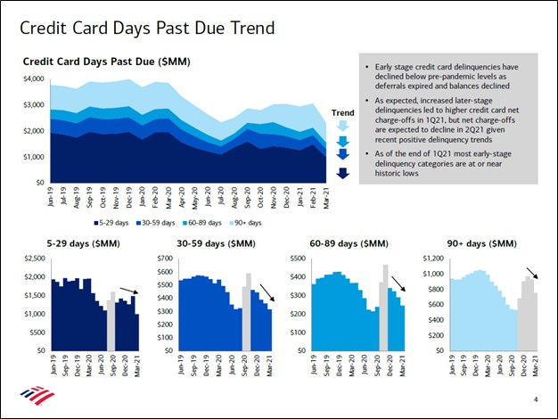 Image Shown: Bank of America’s credit card delinquency rates are trending in a positive direction. Image Source: Bank of America – First Quarter of 2021 IR Earnings Presentation