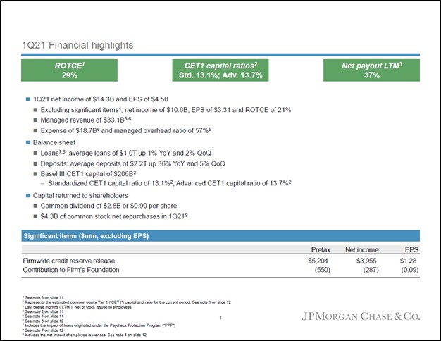 Image Shown: A snapshot of JPMorgan’s performance during the first quarter of 2021. Image Source: JPMorgan – First Quarter of 2021 IR Earnings Presentation