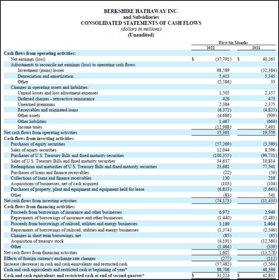 Image Shown: Berkshire Hathaway Inc is a stellar cash flow generator in almost any operating environment. Image Source: Berkshire Hathaway Inc – 10-Q SEC filing covering the Second Quarter of 2022