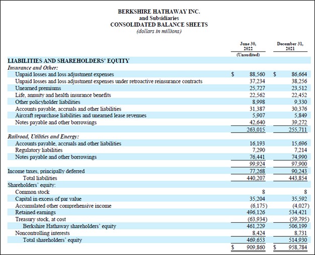 Image Shown: Berkshire Hathaway had substantial non-cancellable financial liabilities on hand at the end of June 2022, including debt and insurance policy-related liabilities. Image Source: Berkshire Hathaway – 10-Q SEC filing covering the Second Quarter of 2022
