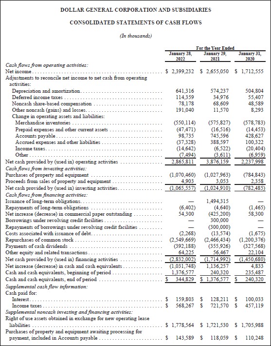 Image Shown: Dollar General is a solid free cash flow generator. Image Source: Dollar General – Fiscal 2021 Annual Report