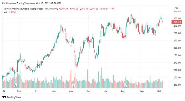 Image Shown: Shares of Vertex Pharmaceuticals Inc, an idea included in our Best Ideas Newsletter portfolio, have performed incredibly well year-to-date through October 2022.
